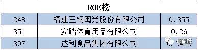 三鋼閩光、安踏體育、達利食品上榜ROE榜。凈資產收益率代表著股東權益的收益水平,用以衡量公司運用自有資本的效率。ROE值越高,意味著股東的投資所創造的利潤越多。