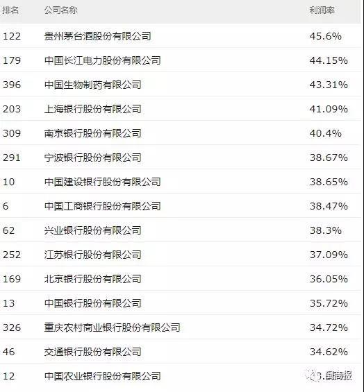 興業銀行利潤率排名前40。在利潤率最高的40家上市公司中,商業銀行占據了21家。興業銀行排名第9名。