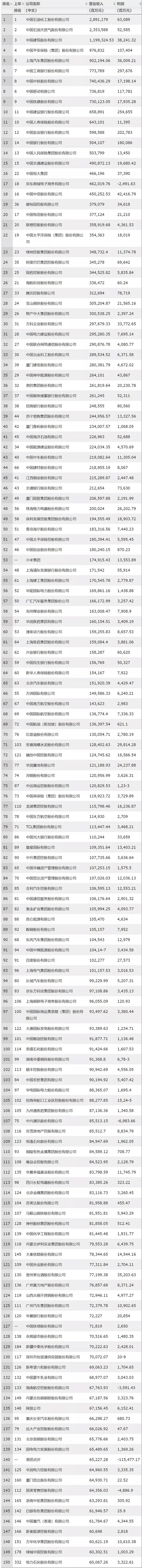 據了解,該榜單由《財富》(中文版)與中金公司財富管理部合作編制,考量了全球范圍內中國上市企業在過去一年的業績和成就。營收方面,中國石化、中國石油和中國建筑位列前三甲。