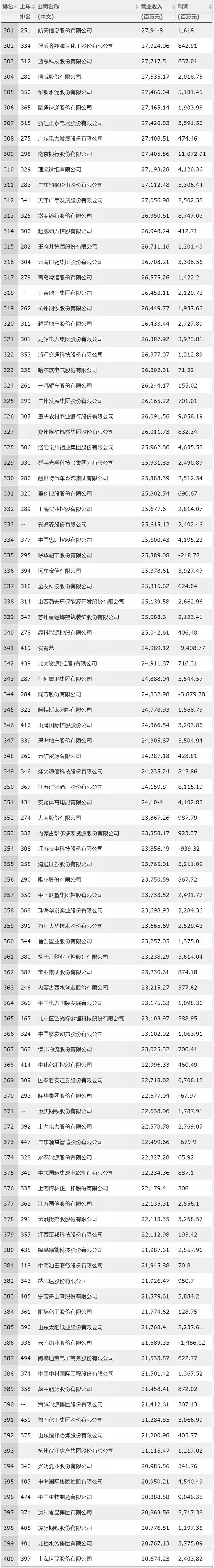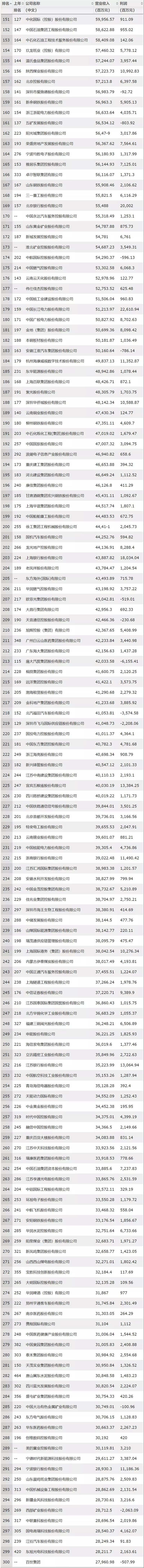 美團、寧德時代、正榮地產首次上榜。今年共有42家新上榜和重新上榜的公司,美團點評以652億元營收排名第140位;寧德時代以296億營收排名第290名;正榮地產以264億排名第318名。