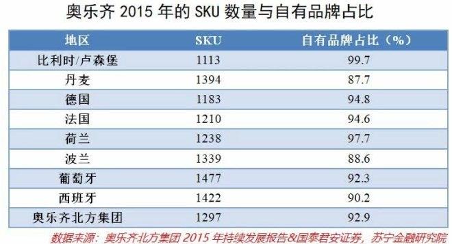 根據國泰君安的研究報告,國際零售企業(yè)的自有品牌商品所占比例一般為20%左右,但奧樂齊的自有品牌商品占比達到了駭人聽聞的90%以上,遠遠高于其他同行(參見下表)。