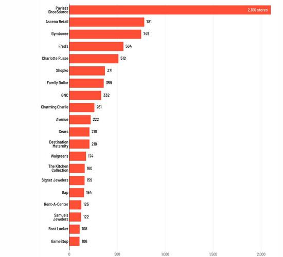 今年美國零售業的破產加劇,很多陷入困境的連鎖店被迫減少門店數量,這導致了關店數量的大幅增長。