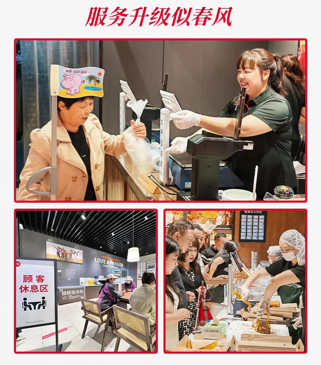在服務(wù)升級的背后,是永輝對員工關(guān)懷的系統(tǒng)性提升:一線員工月綜合薪資普遍提升20%-30%,工作滿一年享 10 天帶薪年假,配備獨立更衣室、員工休息室及營養(yǎng)三餐。“員工幸福是服務(wù)的起點。” 成都匯融廣場店負責(zé)人表示,調(diào)改后員工主動服務(wù)意識顯著增強,肉檔員工主動為老年顧客講解食材處理方法,生鮮區(qū)員工耐心指導(dǎo)果切食用順序,形成 “員工用心—顧客暖心” 的良性循環(huán)。