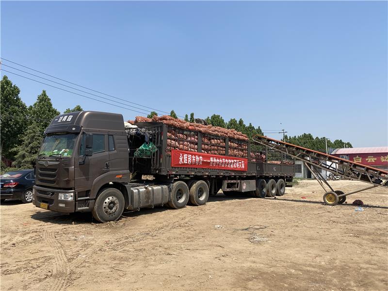 隨即,席晨杰一行立即聯系車輛、收購點、確認數量,采購大蒜。同時,與河南永輝相關部門聯動,在四十一家門店加強大蒜的推廣,按照收購成本價銷售 。