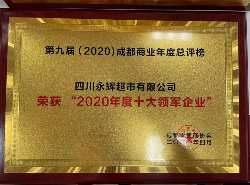 2021年4月14日,成都零售商協會舉行第九屆(2020)成都商業年度總評榜頒獎儀式。四川永輝超市有限公司榮獲 2020年度十大領軍企業”稱號。