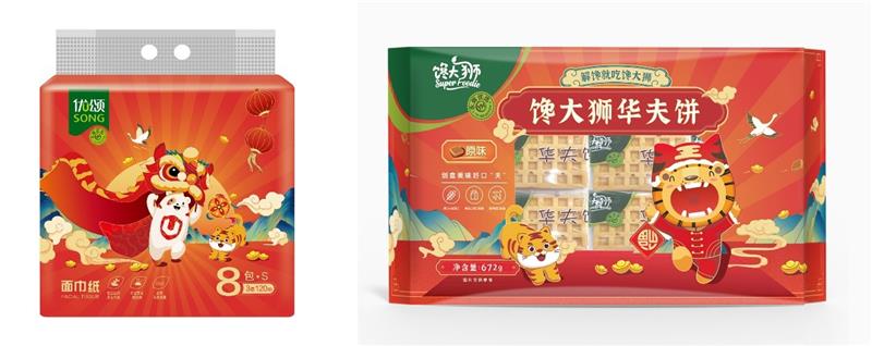 為了配合春節(jié)期間的濃濃年味,永輝自有品牌部分熱銷商品還將以全新的虎年包裝面世。包裝以饞大獅和優(yōu)頌“頌寶”的IP形象為主體,融入大量的虎年春節(jié)元素,讓人忍不住想要“剁手”。