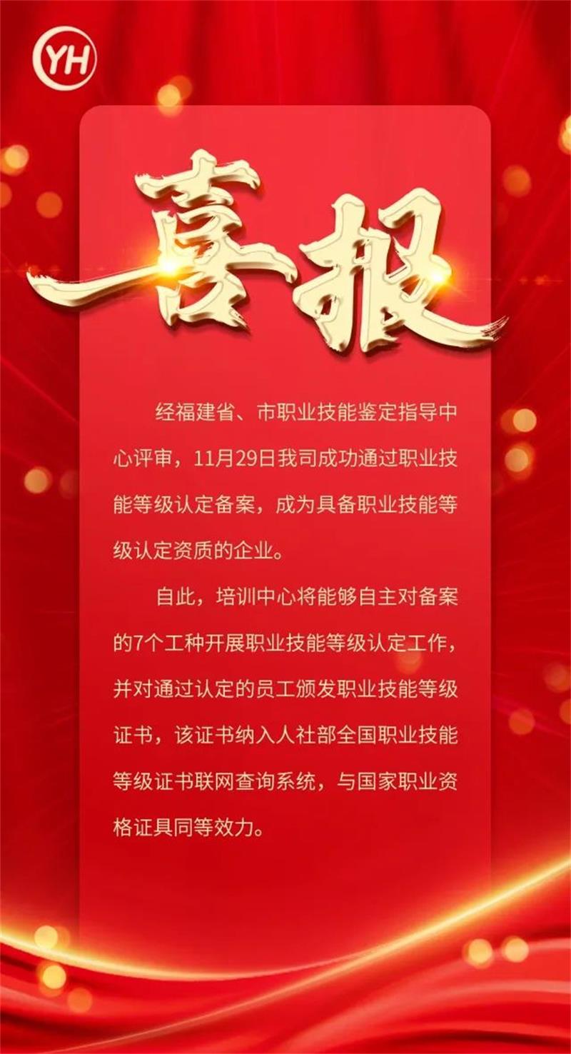 2024年5月,受福州市總工會(huì)支持和指導(dǎo),公司開始積極籌備職業(yè)技能等級認(rèn)定備案工作。經(jīng)過認(rèn)定崗位選擇、資格審查、資料上報(bào)、考核場地現(xiàn)場評估、線上提報(bào)等多個(gè)環(huán)節(jié),由福建省、市職業(yè)技能鑒定指導(dǎo)中心評審,于11月29日成功通過職業(yè)技能等級認(rèn)定備案,成為具備職業(yè)技能等級認(rèn)定資質(zhì)的企業(yè)。